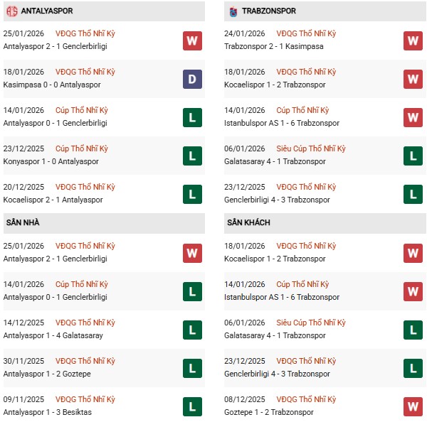 - Trên sân nhà, Antalyaspor thắng 3, thua 4 trước Trabzonspor.