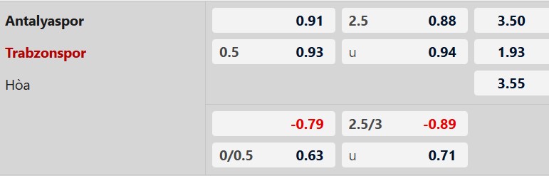 Soi kèo châu Á Antalyaspor vs Trabzonspor:
