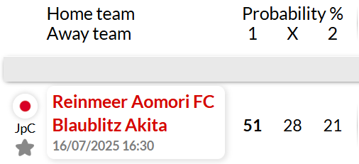 Sau 4 trận liên tiếp không biết đến mùi chiến thắng, Reinmeer Aomori đã có chiến thắng được đánh giá như cơn nữa giải hạn với tỉ số sát nút 1-0 trước Yokogawa Musashino. Trên tổ ấm đội bóng này cũng thi đấu kém cỏi khi 3 trận gần đây thắng 1, hoà 1 và thua 1. Bên kia chiến tuyến, Blaublitz Akita cũng đang khá chật vật ở giải hạng hai khi 4 trận gần nhất đang chỉ 1 lần giành niềm vui thắng lợi và nếm 2 trái đắng.