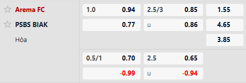 Thông tin tỷ lệ kèo Arema vs PSBS Biak Numfor: