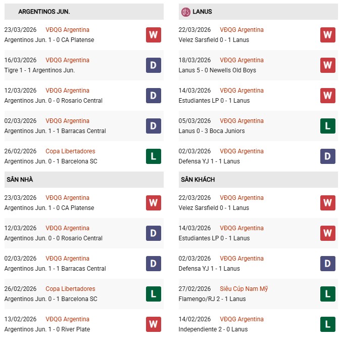 - Argentinos Juniors toàn thắng cả 2 trận đối đầu gần đây trước Lanus.