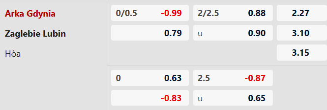 Soi kèo châu Á Arka Gdynia vs Zaglebie Lubin: