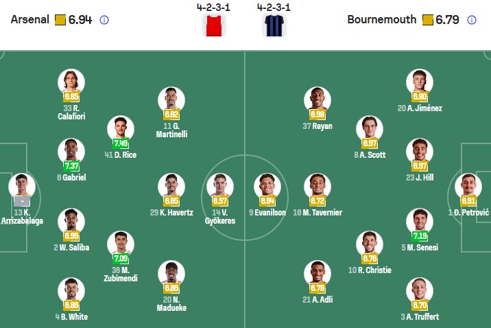 Đội hình dự kiến Arsenal vs Bournemouth: