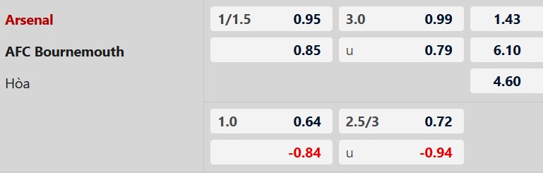 Thông tin tỷ lệ kèo bóng đá Arsenal vs Bournemouth: