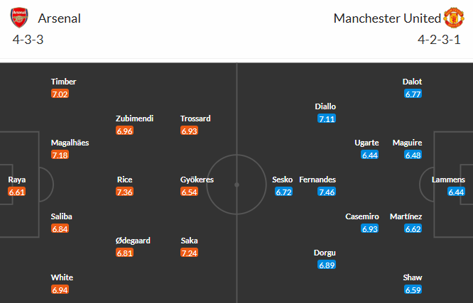 Đội hình dự kiến Arsenal vs MU:
