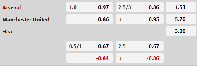 Soi kèo châu Á Arsenal vs MU: