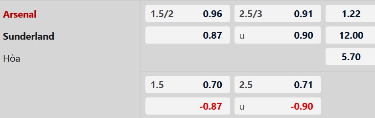 Thông tin tỷ lệ kèo bóng đá Arsenal vs Sunderland: