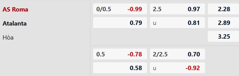 Roma chấp 1/4 bàn là mức kèo hợp lý khi họ có lợi thế sân nhà và phong độ tốt hơn. Với quyết tâm cạnh tranh Top 4 cùng sự ổn định tại Olimpico, Roma có nhiều cơ hội giành chiến thắng trước một Atalanta không quá chắc chắn khi làm khách.