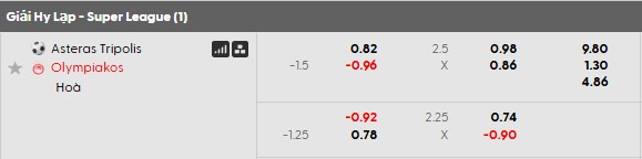 Soi kèo châu Á Asteras vs Olympiakos: