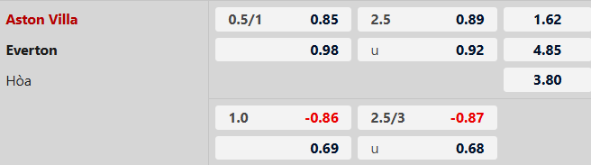Nhận định kèo châu Á Aston Villa vs Everton:
