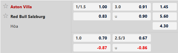 Soi kèo châu á Aston Villa vs RB Salzburg: