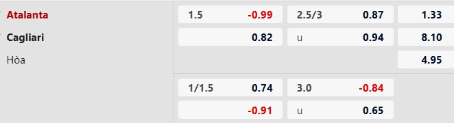 Nhận định kèo châu Á Atalanta vs Cagliari: