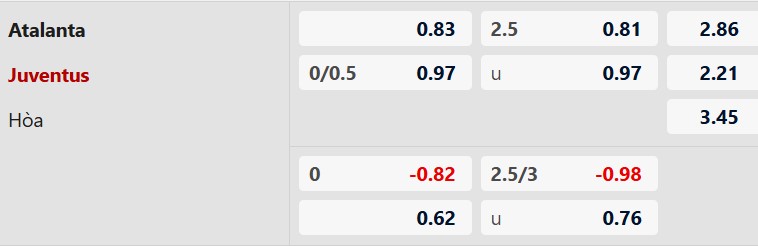 Thông tin tỷ lệ kèo bóng đá Atalanta vs Juventus: