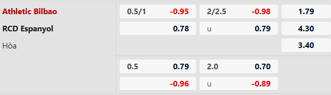 Soi kèo châu Á Athletic Bilbao vs Espanyol: