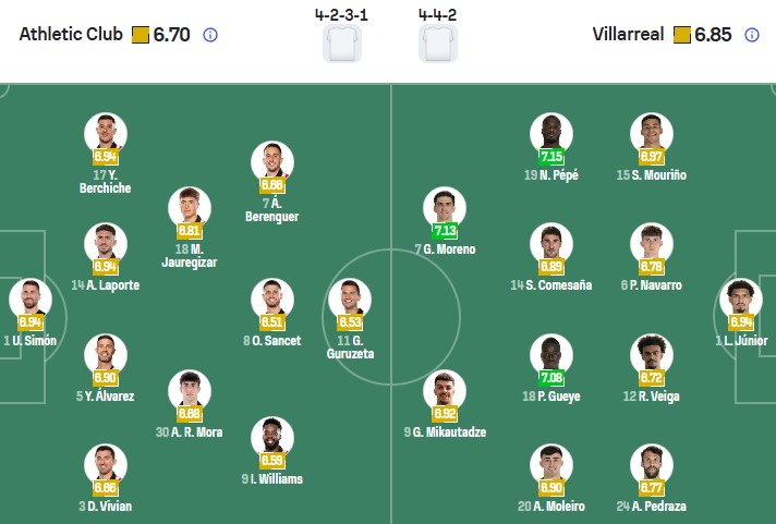 Đội hình dự kiến Athletic Bilbao vs Villarreal: