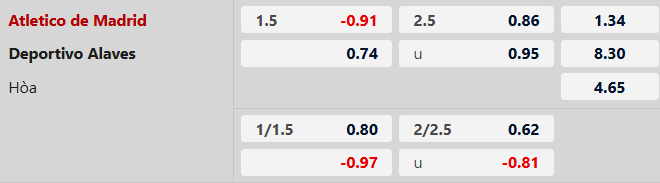 Soi kèo châu Á Atletico Madrid vs Alaves: