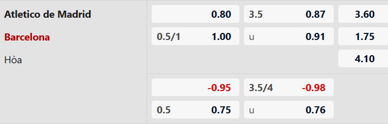 Thông tin tỷ lệ kèo bóng đá Atletico Madrid vs Barcelona: