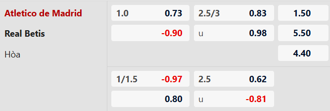 Thông tin kèo bóng đá Atletico Madrid vs Betis: