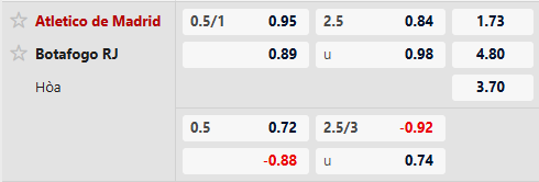 Thông tin tỷ lệ kèo bóng đá Atletico Madrid vs Botafogo: