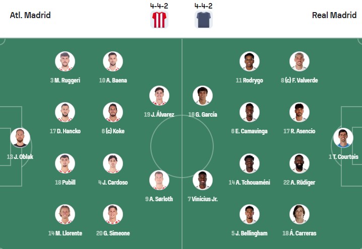 Thông tin lực lượng Atletico Madrid vs Real Madrid:
