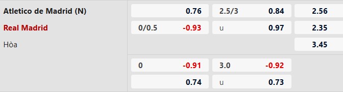 Soi kèo châu Á Atletico Madrid vs Real Madrid: