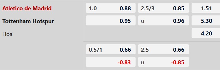 Soi kèo châu Á Atletico Madrid vs Tottenham:
