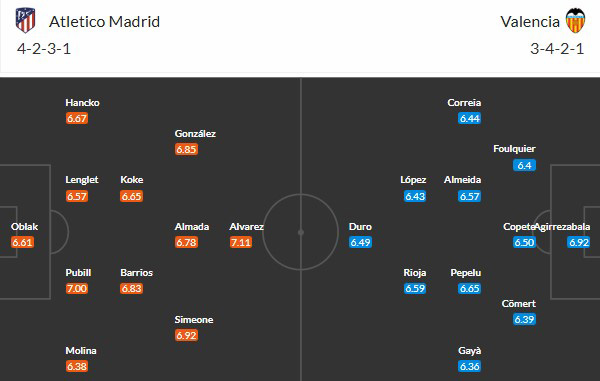 Thông tin lực lượng Atletico Madrid vs Valencia:
