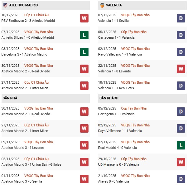 Thống kê phong độ Atletico Madrid vs Valencia: