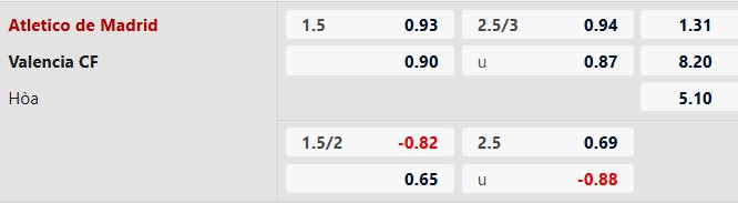 Thông tin tỷ lệ kèo bóng đá Atletico Madrid vs Valencia: