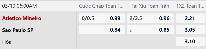 Thông tin kèo bóng đá Atletico Mineiro vs Sao Paulo: