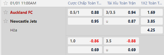 Thông tin tỷ lệ kèo Auckland FC vs Newcastle Jets: