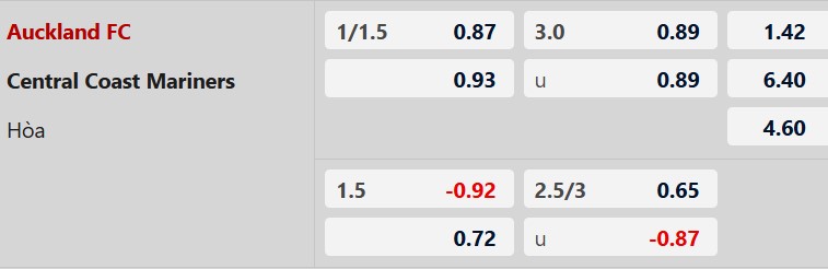 Mức chấp 1 1/4 bàn cho thấy sự chênh lệch khá rõ giữa hai đội. Auckland có lợi thế sân nhà cùng động lực lớn để giành chiến thắng, trong khi Central Coast lại đang sa sút nghiêm trọng. Với hàng thủ thiếu chắc chắn của đội khách, Auckland hoàn toàn có thể tạo ra một chiến thắng cách biệt.