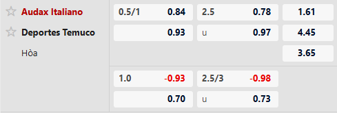 Thông tin tỷ lệ Audax Italiano vs Deportes Temuco: