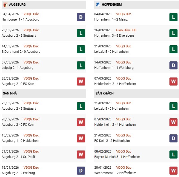 - Trên sân nhà, Augsburg thắng 3, thua 5 trước Hoffenheim.