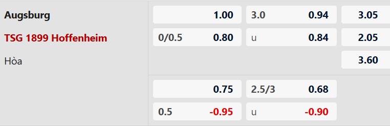 Soi kèo châu Á Augsburg vs Hoffenheim: