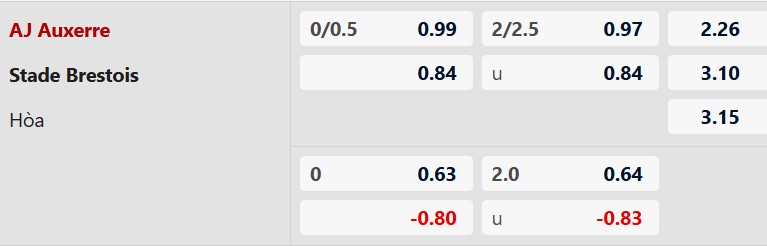 Thông tin kèo bóng đá Auxerre vs Brest: