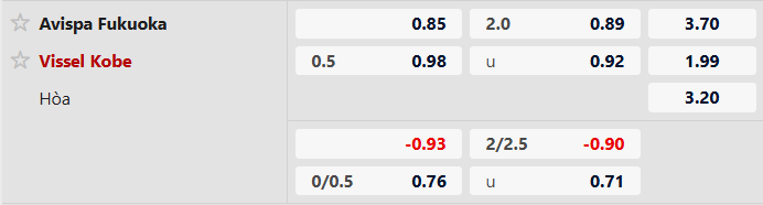 Thông tin tỷ lệ Avispa Fukuoka vs Vissel Kobe: