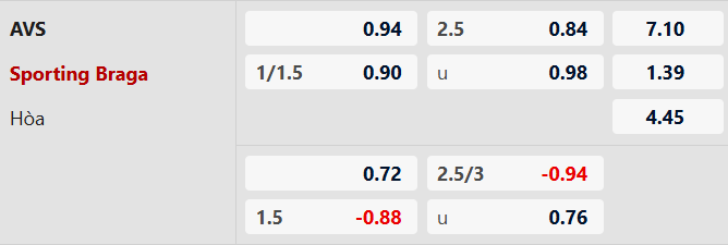 Có 10 bàn thắng đã được ghi trong 3 trận đối đầu vừa qua giữa AVS Futebol và Braga, 2 trận nổ tài. AVS lúc này là đội bóng có hàng thủ tệ nhất với 47 bàn thua sau 19 trận, trung bình đến 2.5 bàn/trận. Kèo tài trận này khá sáng.