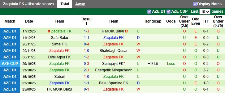 Phong độ thời gian qua của Zaqatala ở mức trung bình với 4 chiến thắng, 2 trận hòa và 4 thất bại trong 10 trận gần nhất. Khi thi đấu xa nhà, đội bóng này cũng không quá ổn định, thắng 3, hòa 2 và thua 5 trong 10 trận sân khách gần đây. Zaqatala thường lựa chọn lối chơi phòng ngự phản công, tận dụng những tình huống cố định hoặc sai lầm của đối phương. Trước một Baku Sporting chơi khá kín kẽ, Zaqatala nhiều khả năng sẽ ưu tiên mục tiêu có điểm hơn là mạo hiểm tìm chiến thắng.