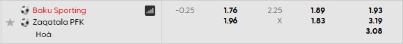Thông tin tỷ lệ Baku Sporting vs Zaqatala: