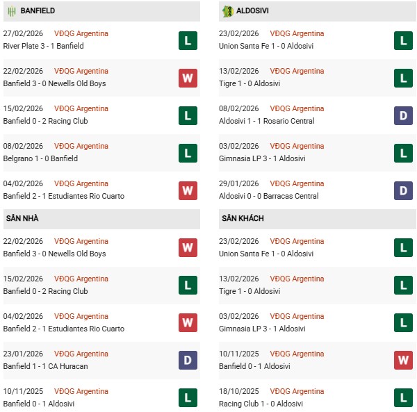 - Trên sân nhà, Banfield thắng 1, thua 3 trước Aldosivi.
