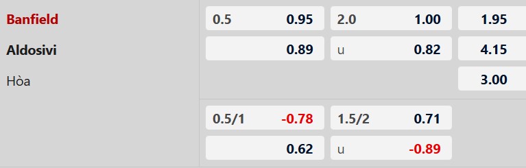 Thông tin tỷ lệ cược Banfield vs Aldosivi: