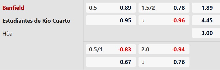 Với lợi thế sân nhà, Banfield được xếp ở cửa trên với mức chấp 1/2 bàn. Dù phong độ chưa thật sự thuyết phục, Banfield vẫn sở hữu kinh nghiệm và bản lĩnh vượt trội so với một tân binh như Estudiantes Rio Cuarto. Trong bối cảnh đội khách thường chơi khá dè dặt khi xa nhà, lựa chọn Banfield ở kèo châu Á vẫn mang tính an toàn hơn.