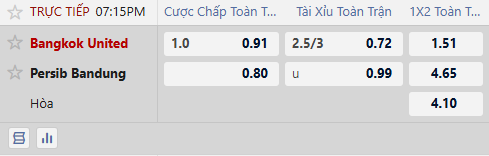 Thông tin tỷ lệ kèo Bangkok United vs Persib Bandung: