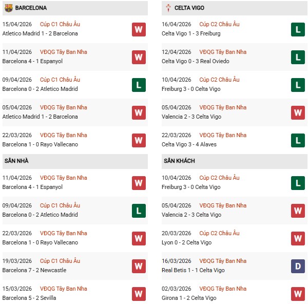 Thống kê phong độ Barcelona vs Celta Vigo: