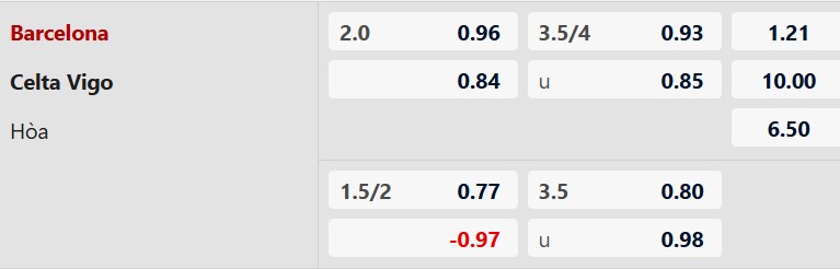 Soi kèo châu Á Barcelona vs Celta Vigo: