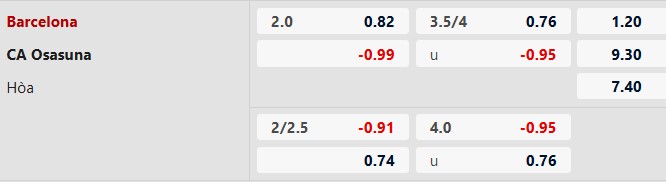 Thông tin tỷ lệ kèo bóng đá Barcelona vs Osasuna: