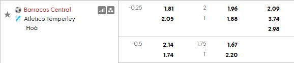 Thông tin tỷ lệ cược Barracas Central vs Temperley:
