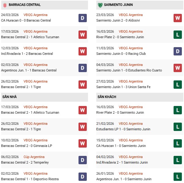 - Trên sân nhà, Barracas thắng 1, thua 3 trước Sarmiento.