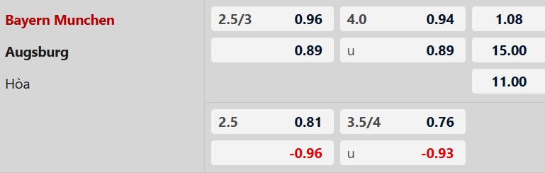 Thông tin tỷ lệ kèo bóng đá Bayern Munich vs Augsburg:
